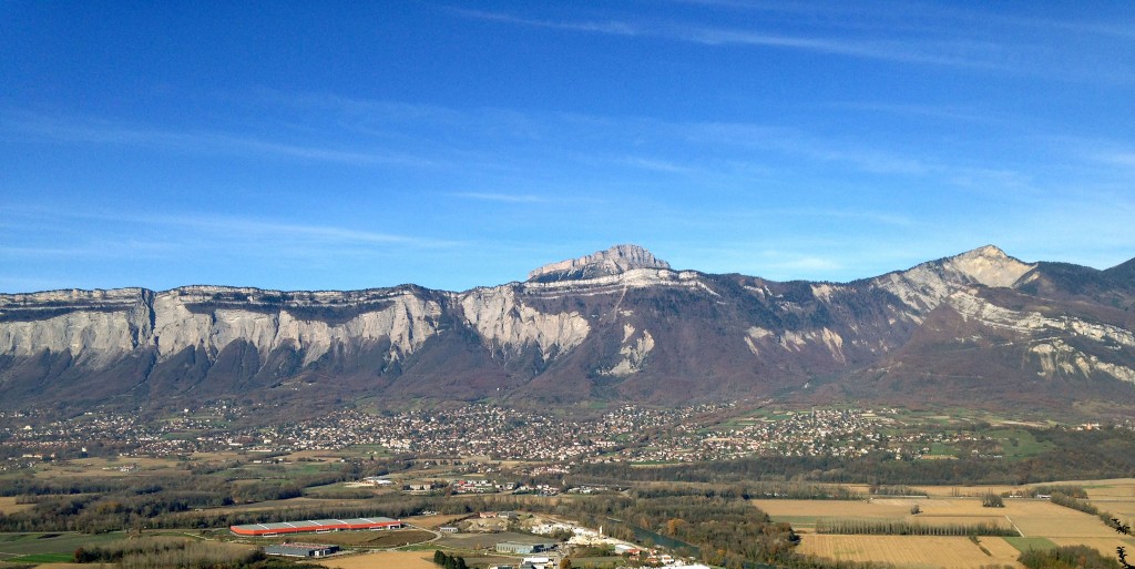 Cette vue aérienne prise en 1948, (archives de l’Institut de Géographie Alpine), montre parfaitement la corniche des Grands Crêts, les éboulis boisés, le torrent du Manival, et l’ampleur du coteau jusqu’au méandre de l’Isère. Entre Corbonne, à la limite de Biviers, et Manival à la limite de St Nazaire les Eymes, on distingue le petit torrent du Rivet ,  le Labis et l’Arguil qui se rejoignent pour former le Fangeat.